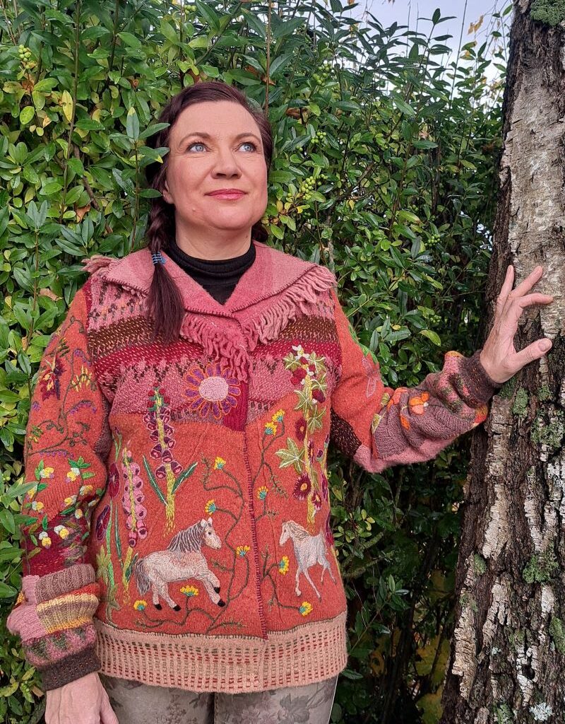Olen Riine Sooäär. Minu kireks on taaskasutatavad materjalid ja loovtikkimine kui viis jutustada lugu. Tikin igapäevaelust sündinud motiive – vaateid aknast, puid, hobuseid ja hetki – ning annan kasutatud riideesemetele tikkimise teel uue elu.