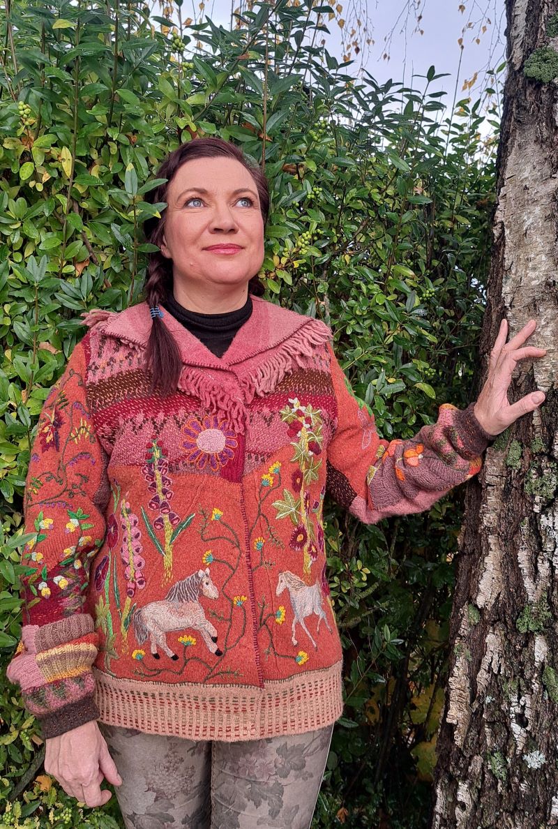 Olen Riine Sooäär. Minu kireks on taaskasutatavad materjalid ja loovtikkimine kui viis jutustada lugu. Tikin igapäevaelust sündinud motiive – vaateid aknast, puid, hobuseid ja hetki – ning annan kasutatud riideesemetele tikkimise teel uue elu.